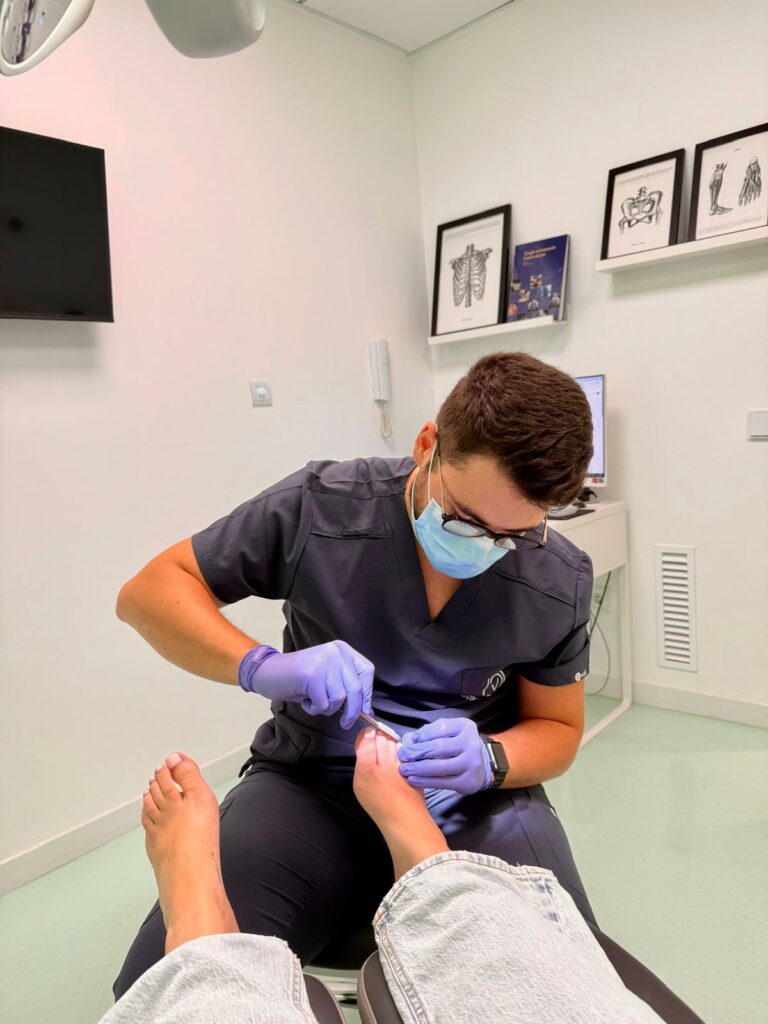 La quiropodia es un tratamiento podológico basado en una primera inspección, en la eliminación de durezas, callosidades y corte adecuado de las uñas para mantener la salud del pie. Suele realizarse de forma periódica para prevenir molestias y mejorar la higiene podal.